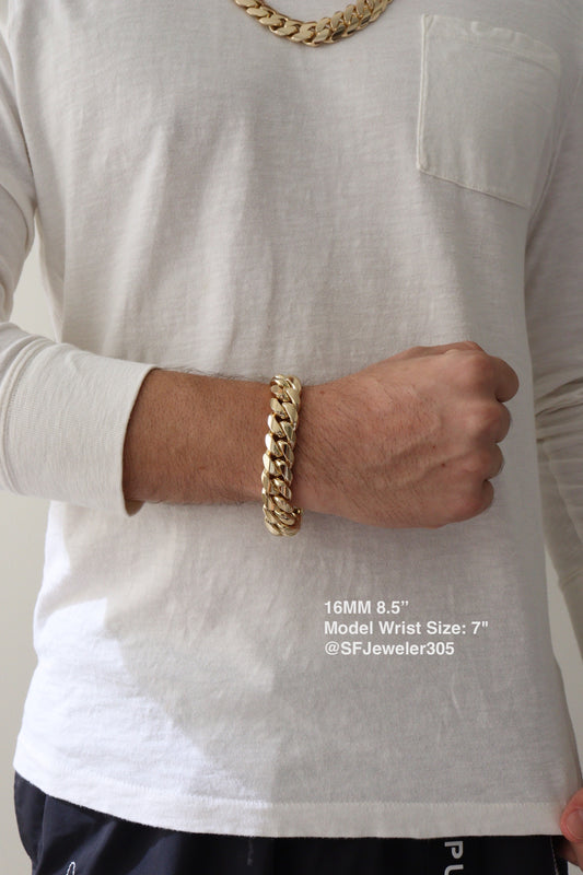 16MM Miami Cuban Link Bracelet – Premium 14k Gold Over .999 Silver