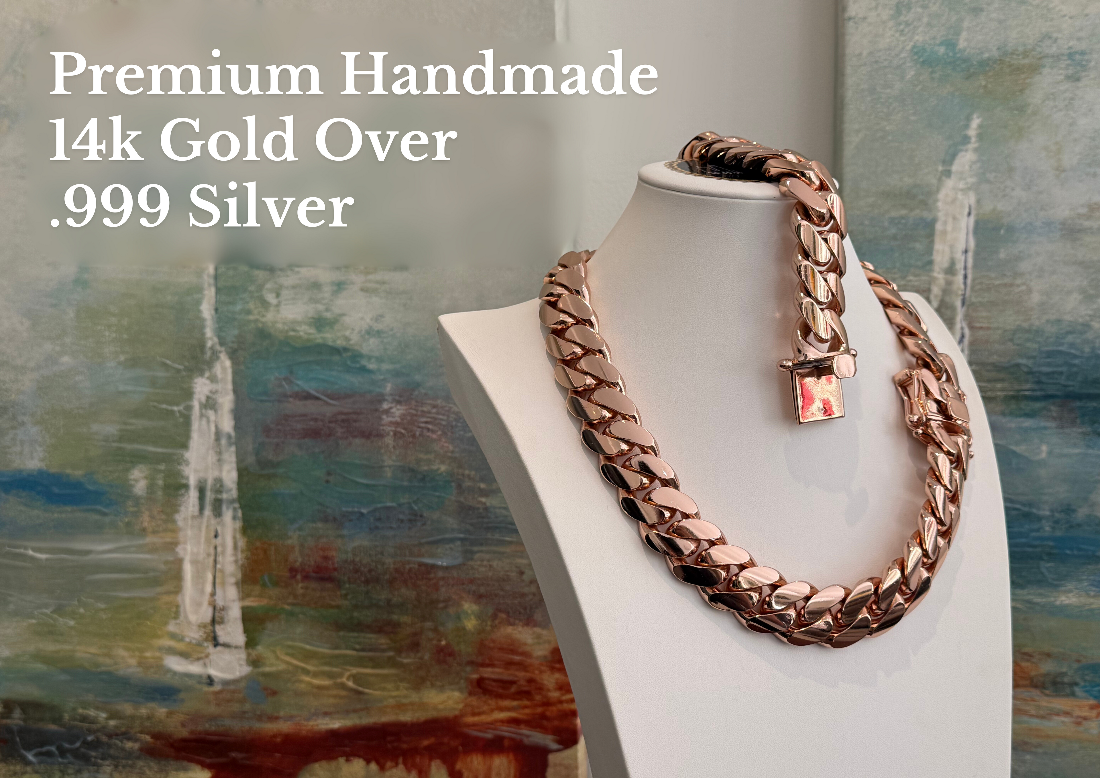 22MM Miami Cuban Link Chain – Premium 14k Gold Over .999 Silver