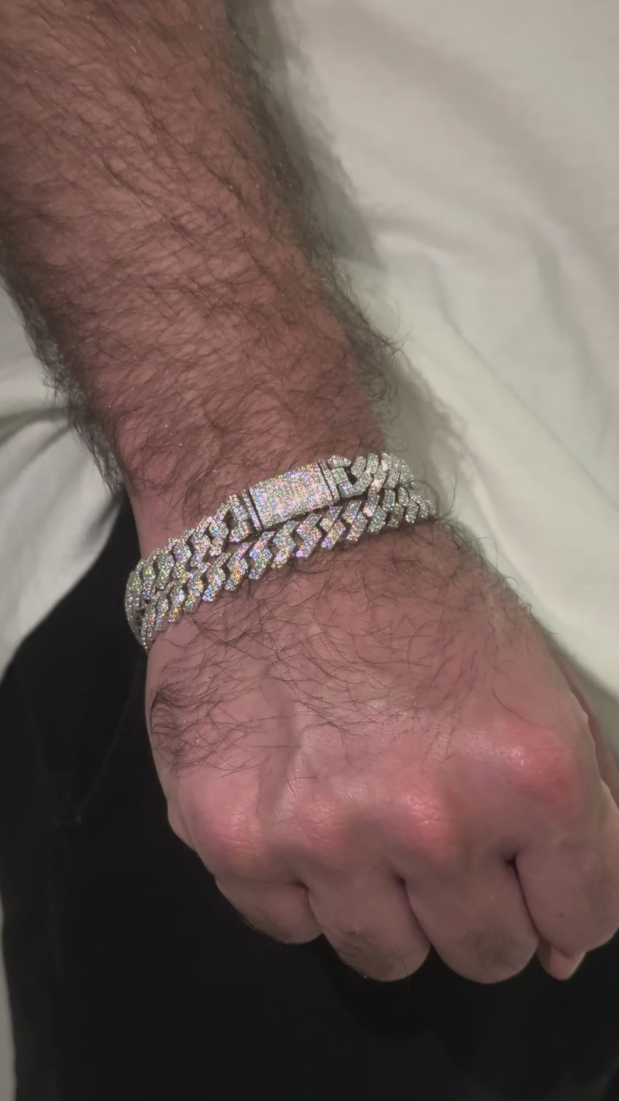 This bracelet brings sharp shine and a bold look. Crafted in silver and set with VVS1 Moissanite in a prong setting, it delivers strong light, solid weight, and everyday durability, pairs easily with any style. A sleek, icy piece built to stand out.