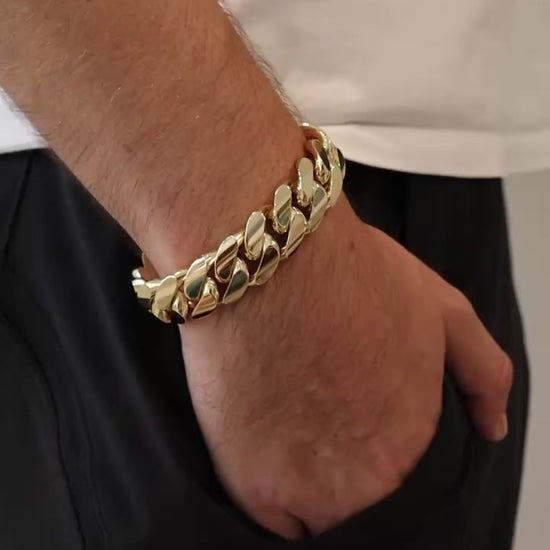 18MM Miami Cuban Link Bracelet – Premium 14k Gold Over .999 Silver