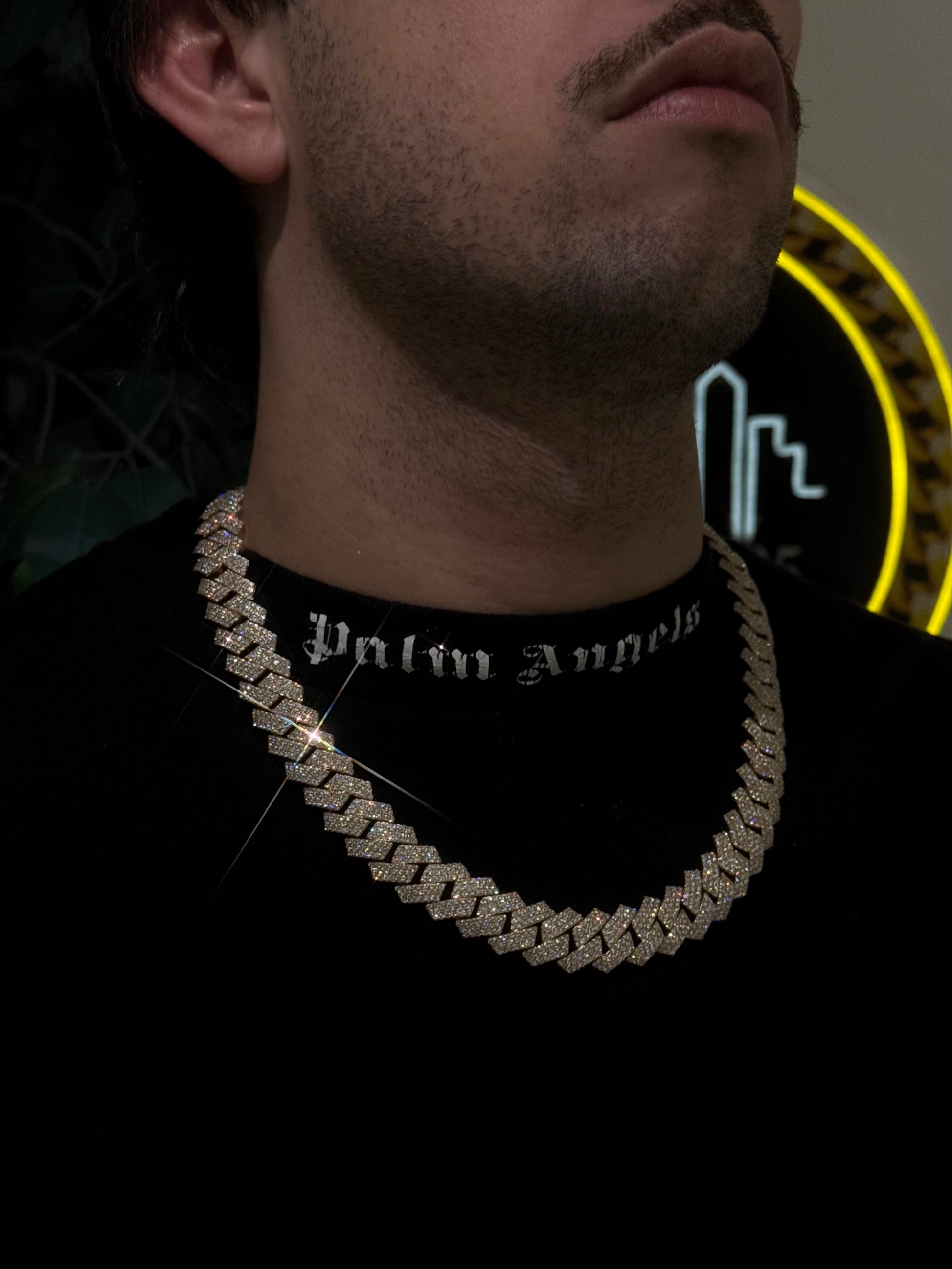 16MM Cuban Link Chain + VVS1 Moissanite Stones -Prong Setting-